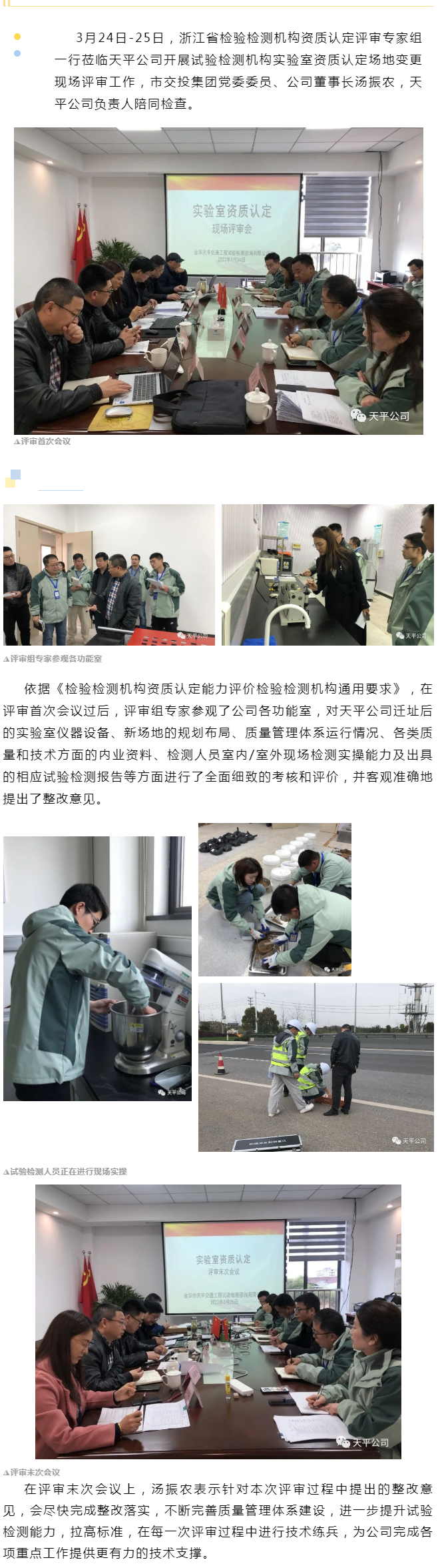 天平公司通過試驗檢測機構實驗室資質認定場地變更現場評審工作